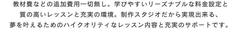 3.教材費などの追加費用はございません。レッスン料金のみ月払いでのお支払いとなります。